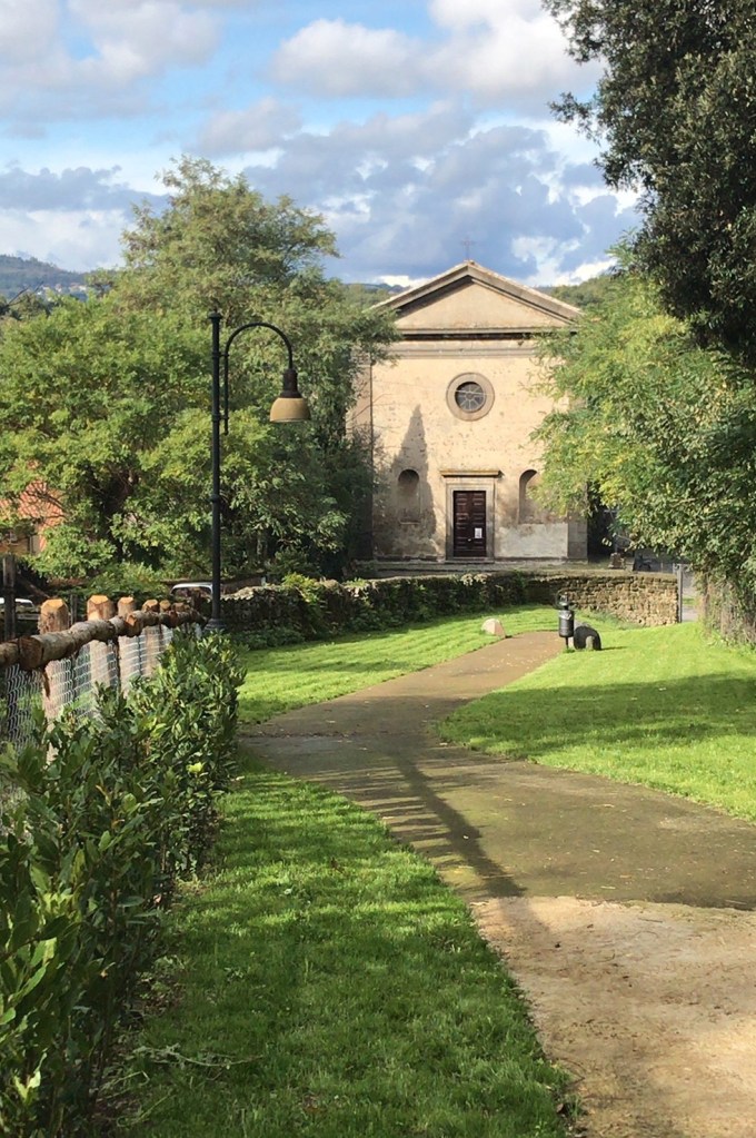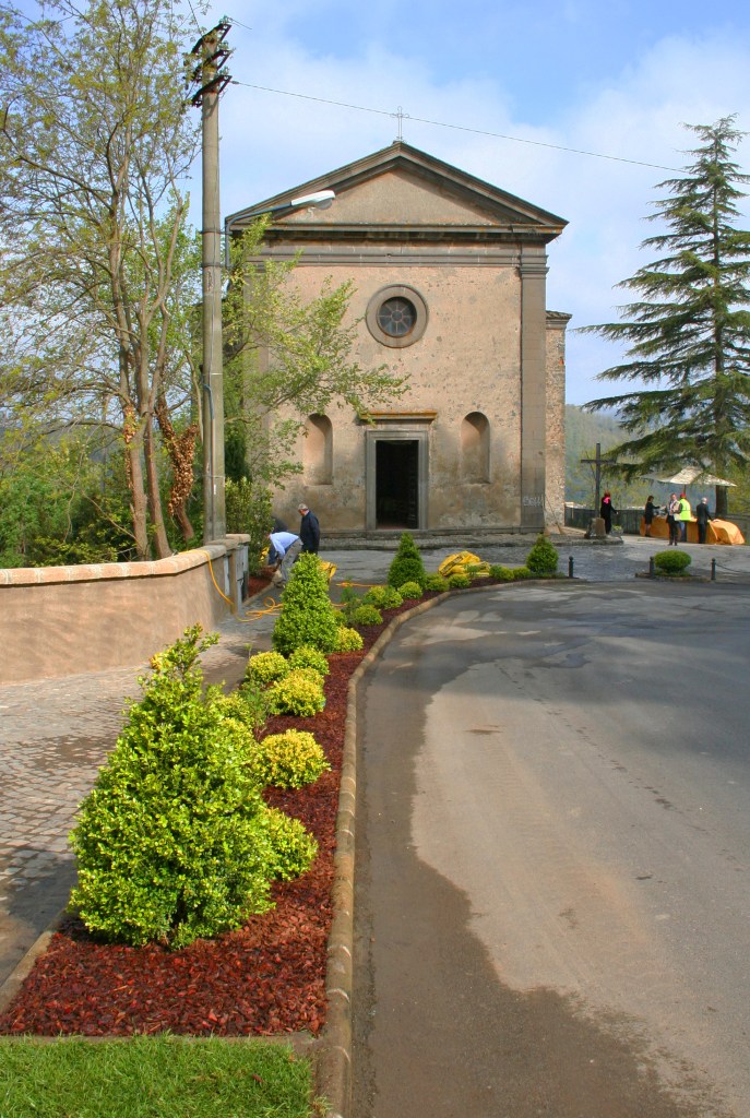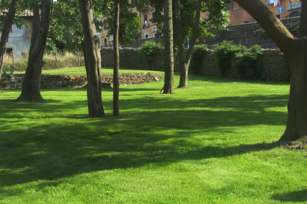 Ho lavorato quindi a stretto contatto con l’impresa che era stata chiamata per l’esecuzione dei lavori, decidendo al momento come e dove ripulire il terreno, ridisegnare le pendenze e soprattutto decidere quali essenze salvare e quali abbattere. Il giardino è uno spazio appunto racchiuso da una rupe altissima e da un muro antico, è leggermente in discesa e anche se non ha la vista sul Lago di Bracciano ha comunque un panorama sul territorio circostante e su una piccola chiesa del 1500 dell’architetto Vignola. Molto amato dalla cittadinanza, è un luogo molto intimo e raccolto.