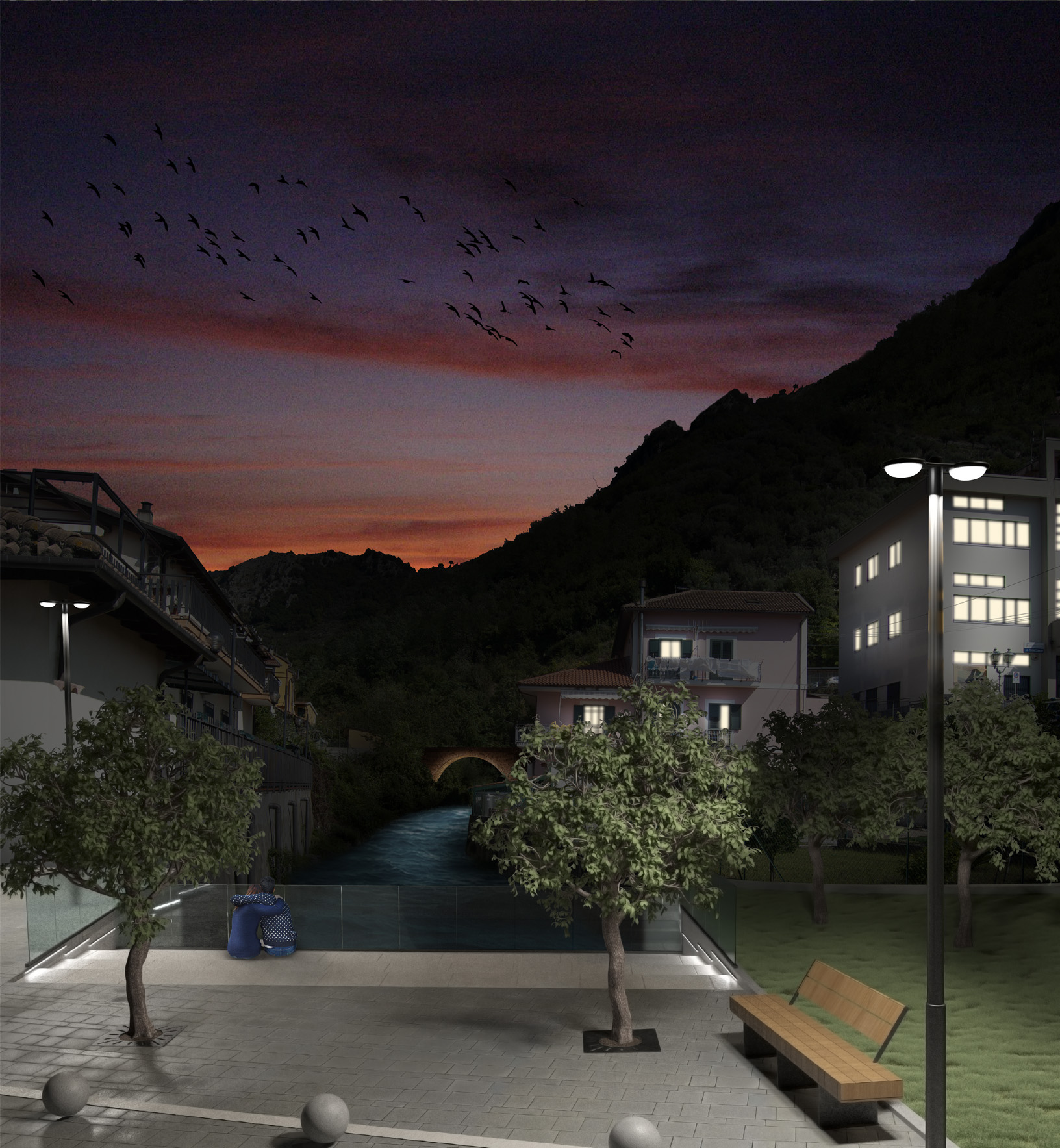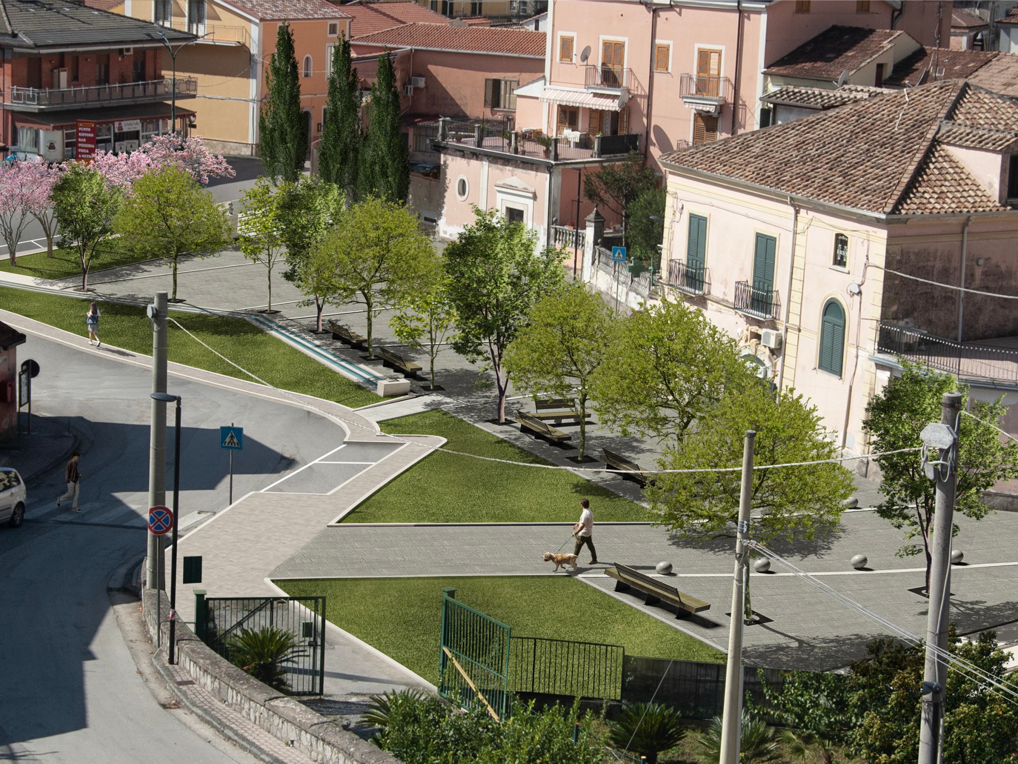 L’espansione urbana si è aggregata principalmente sulle due principali direttrici stradali, la Statale 105 e la Statale 26 che si collega all’Autostrada del Sole. Il tombaggio del fiume per ovviare al problema dell’attraversamento viario dalla parte ovest alla parte nord dell’abitato ha creato ancor di più una disomogeneità del contesto urbano aggravata dal vuoto del parcheggio costruito negli ani 90’ chiudendo il torrente Sordina. Studiando il bando e il territorio ne è scaturita un indagine di tutti gli aspetti urbanistici – territoriali che è stata graficizzata attraverso una serie di analisi funzionali e progettuali, che sono illustrate nella relazione descrittiva mettendo in luce il procedimento di evoluzione della progettazione incentrata sul recupero di spazio da cambiamento della viabilità carrabile e sul riempimento dell’area centrale ex parcheggio che genera un nuovo spazio urbano che riconnette una serie di spazi di risulta.( V. schemi allegati ). Uno degli obbiettivi del masterplan è stato quello di rendere possibile la lettura degli spazi pedonali lastricati e delle aree a verde che sono state inserite per creare un sistema ambientale green e uno spazio esterno vivibile in tutte le stagioni dell’anno e che faccia percepire le peculiarità del luogo, fatto da: paesaggio collinare e paesaggio fluviale.